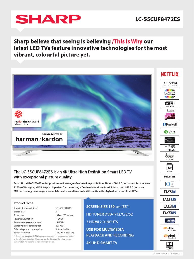 Product Datasheet Sharp Lc 55cuf8472es 139 7 Cm 55 4k Ultra Hd