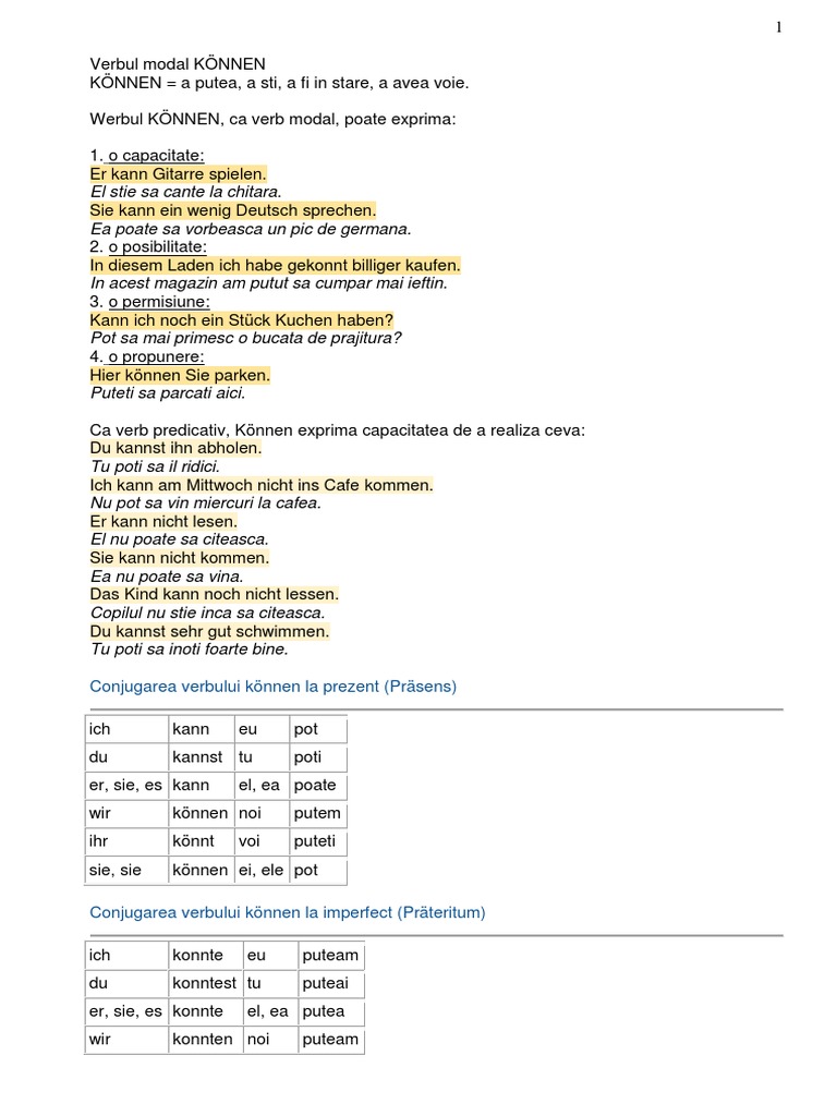 Verbele Modale In Limba Germană Cu Exemple